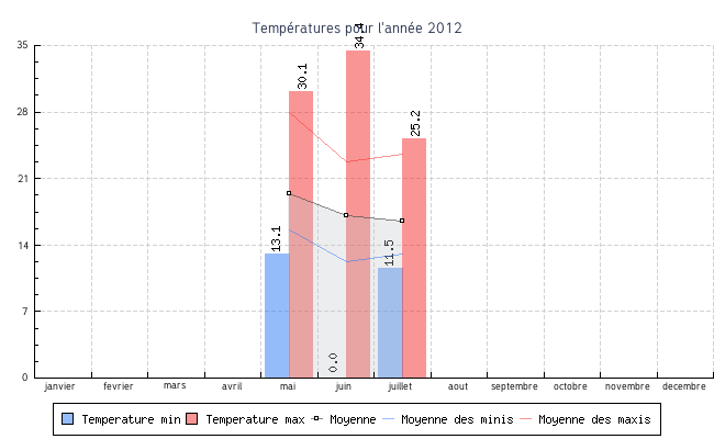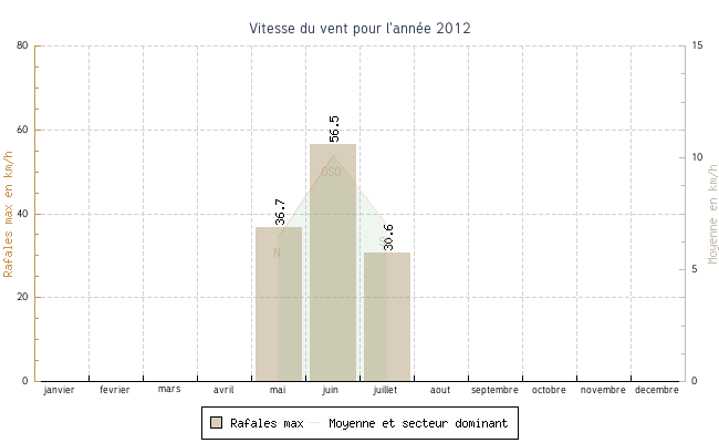 | juin | 0.0 °C | 12.3 °C | 34.4 °C | 22.7 °C | 17.1 °C | 10.1 km/h | 56.5 km/h | OSO |